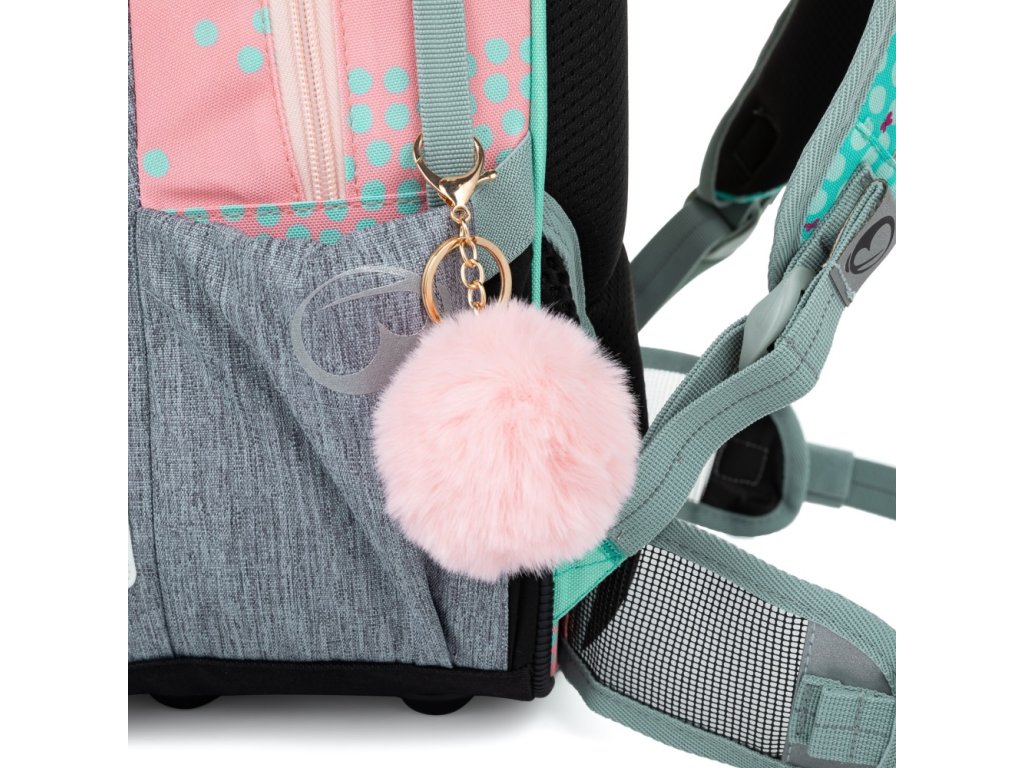 - Školský batoh je možné pripevniť na háčik k lavici pomocou látkového pútka.