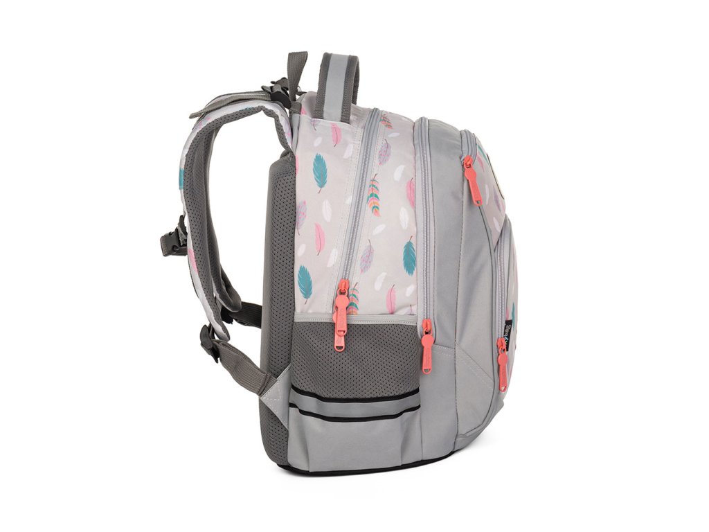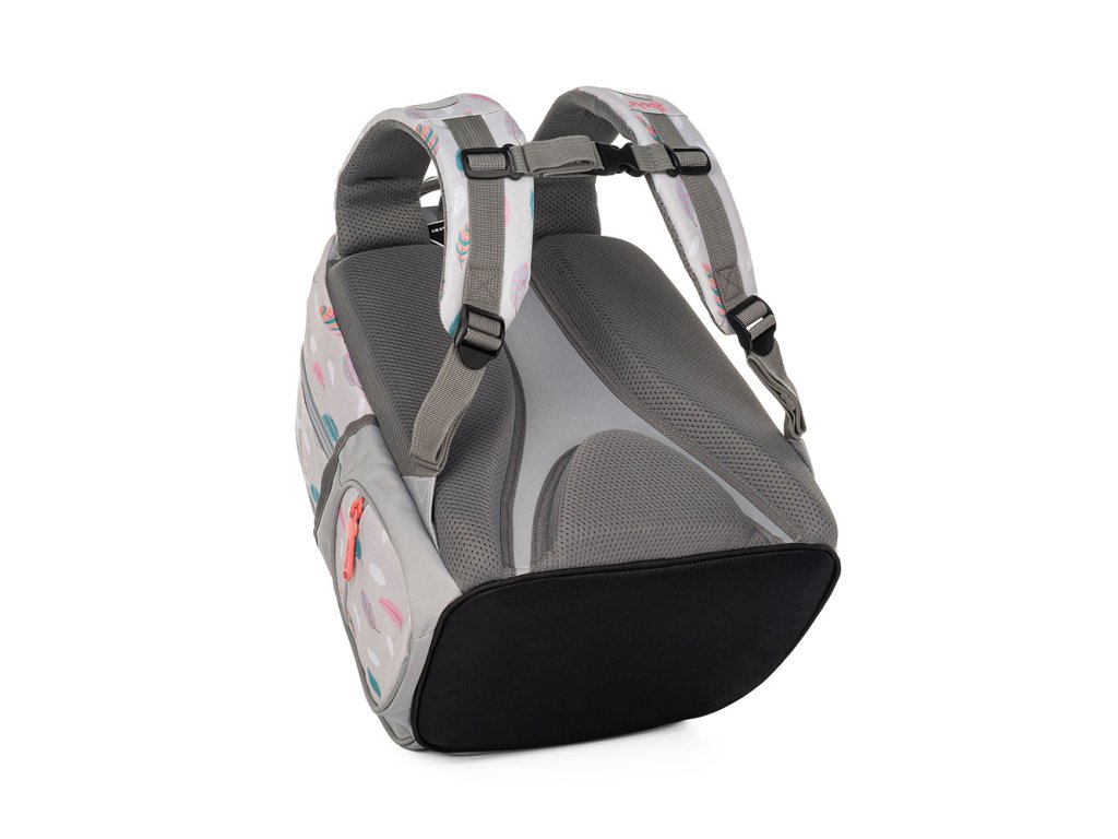 Dve vnútorné priehradky poskytujú dostatočný priestor na učebnice, zošity a aj na iné školské potreby. Má pevné dno, čo zabraňuje ušpineniu zvonku, ale aj proti pretečeniu smerom von z batohu. Po stranách sú taktiež priehradky, ktoré sú určené na fľašu s vodou. Batoh obsahuje aj reflexné prvky. Je ideálny pre školákov v 1. až 3. ročníku, pre deti vysoké od 125 cm.