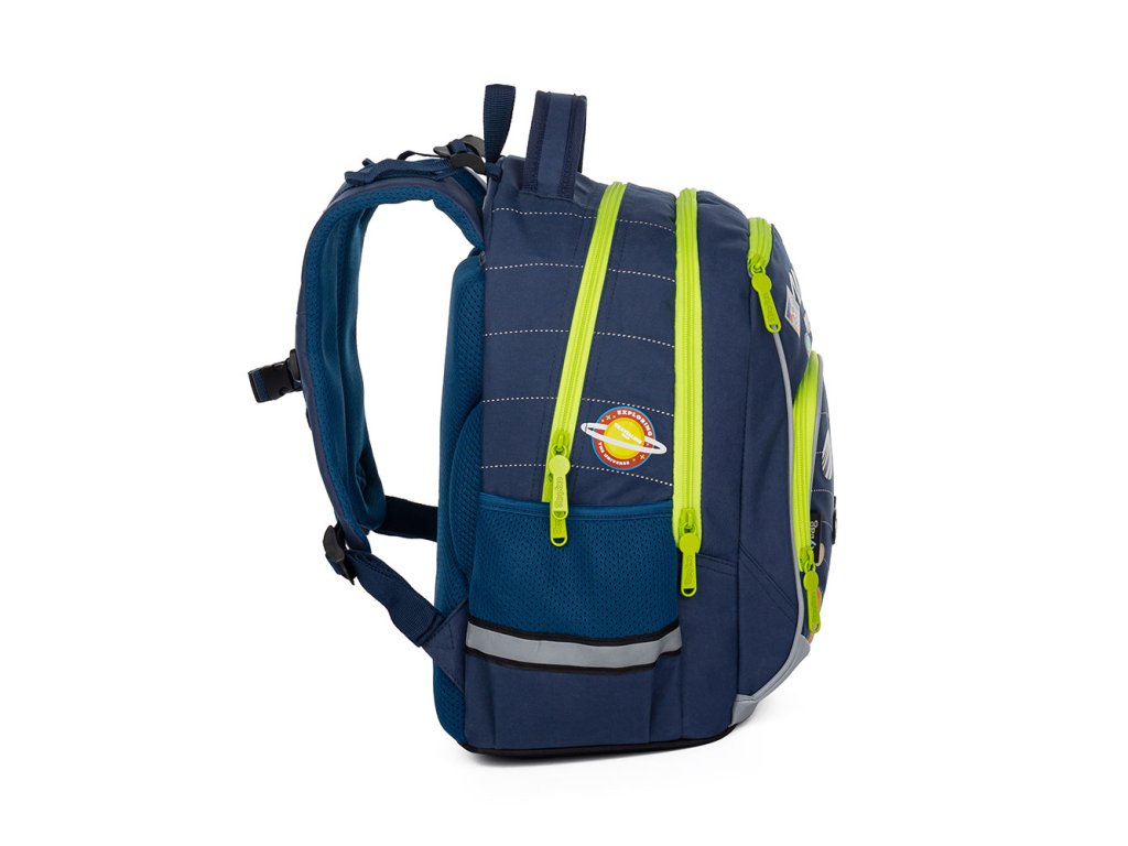 Dve vnútorné priehradky poskytujú dostatočný priestor na učebnice, zošity a aj na iné školské potreby. Má pevné dno, čo zabraňuje ušpineniu zvonku, ale aj proti pretečeniu smerom von z batohu. Po stranách sú taktiež priehradky, ktoré sú určené na fľašu s vodou. Batoh obsahuje aj reflexné prvky. Je ideálny pre školákov v 1. až 3. ročníku, pre deti vysoké od 125 cm.