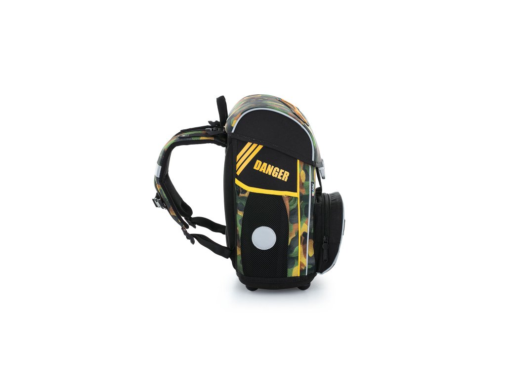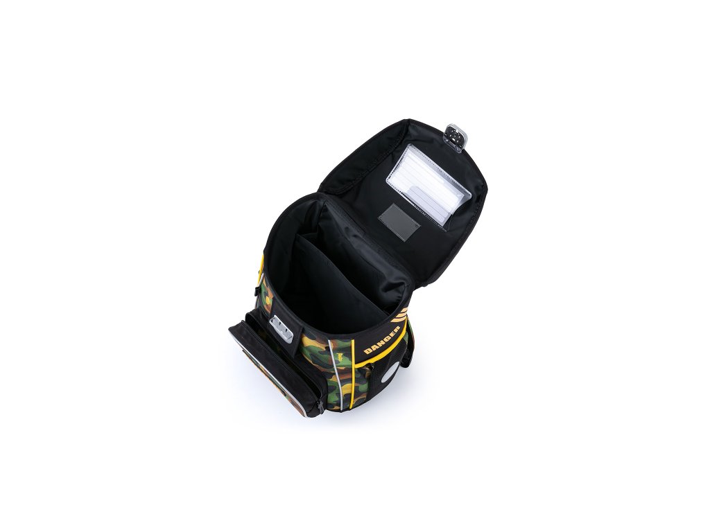 Aktovka sa skladá z jednej priestrannej komory, kam sa pohodlne zmestia všetky školské pomôcky pre deti v 1.a 2. ročníku. Dno má pevnú podstavu, chráni tým obsah pred prevrhnutím a vysypaním.