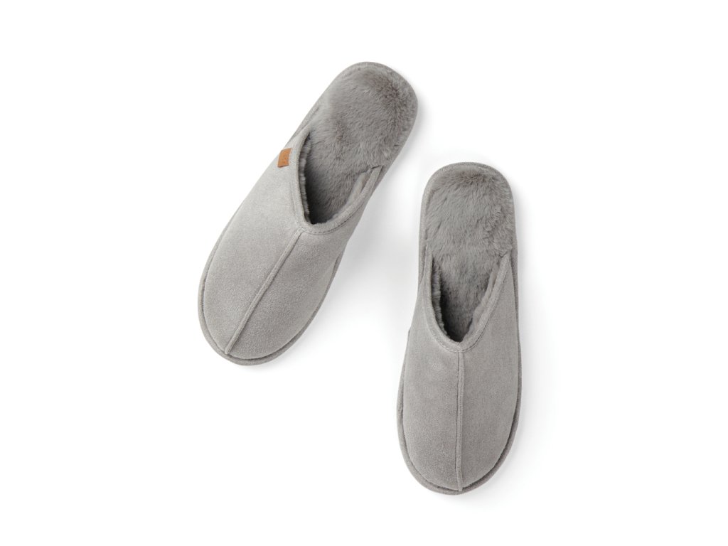 Šľapky s príjemnou plyšovou vnútornou časťou a elegantnou semišovou vonkajšou časťou. Pevná polstrovaná podrážka ponúka mimoriadny komfort. Dostupné v dvoch veľkostiach: S/M (EUR 36-40) a L/XL (EUR 41-45).Dodatočné parametre