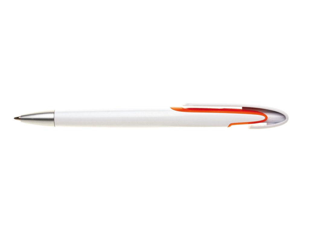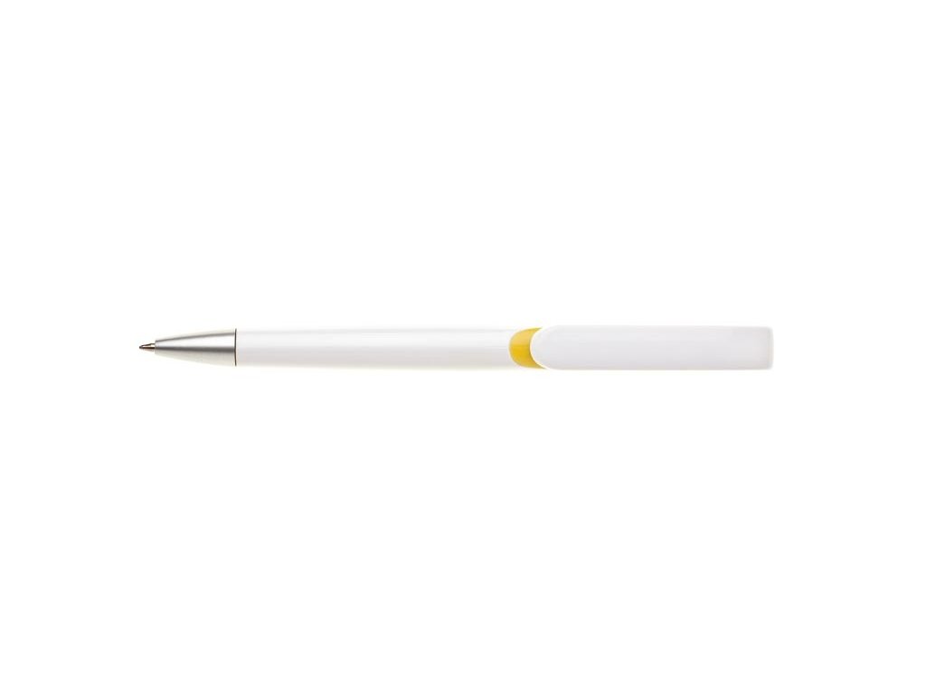 Biele plastové guľôčkové pero SORA s farebným doplnkom pod klipom a striebornou špičkou. Modrá náplň X-20. Kolekcia DESIGN.Dodatočné parametre