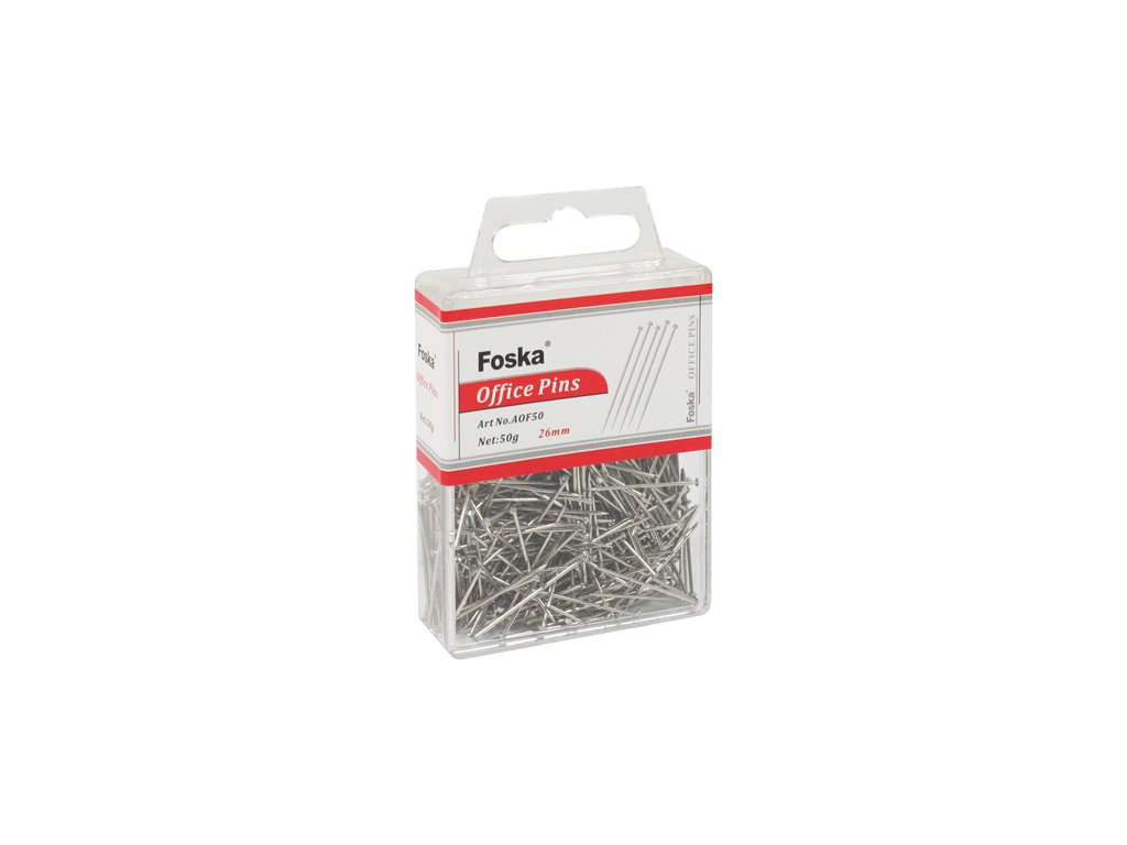 Poniklované špendlíky, dĺžka 28 mm, balené po 50g v plastovej krabičke so závesom.