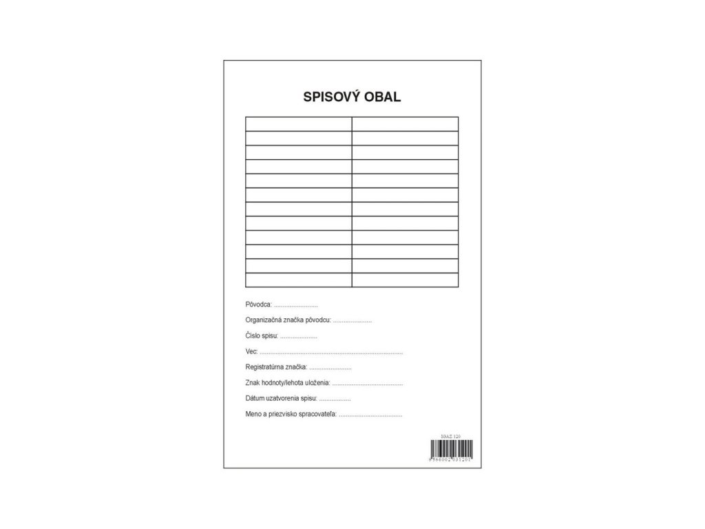 Evidenčné tlačivo. Spisový obal, A4 dvojlist, 80 g, balenie 500 ks.Dodatočné parametre