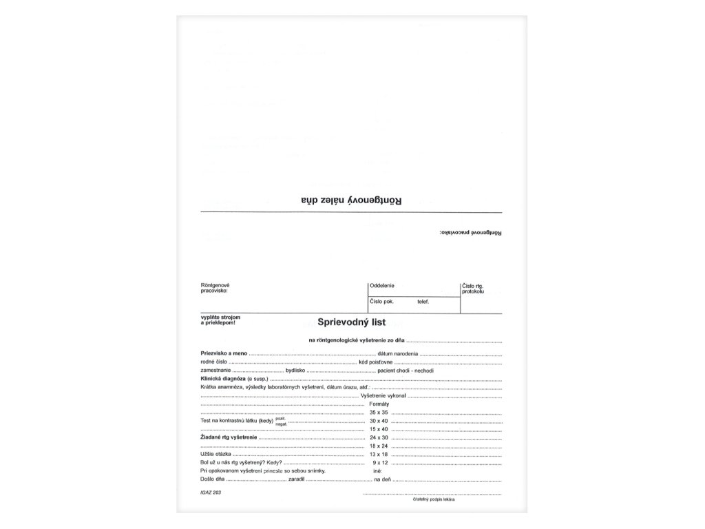 Sprievodný list na rtg. vyšetrenie A5 (203)