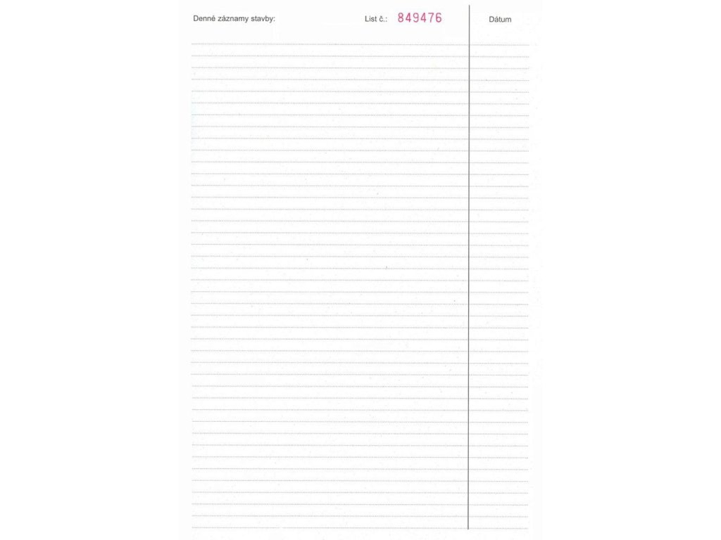 Stavebné tlačivo. Stavebný denník, číslovaný, A4, kniha, 158 listov.Dodatočné parametre