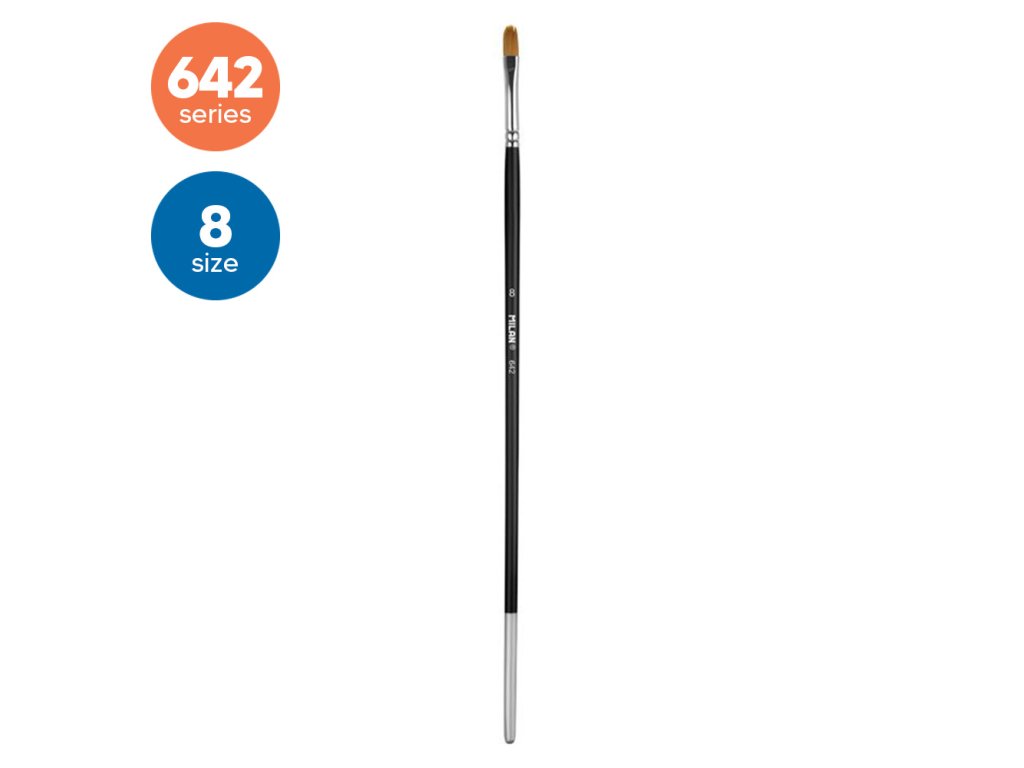 Plochý štetec s drevenou rukoväťou. Čierna lakovaná povrchová úprava (matná) s niklovým úchopom. Zloženie: syntetické štetiny, priemer vlákna 0,12 mm. Vhodný na olejové a akrylové farby. Priemer štetín: 7,4 mm. Dĺžka štetín: 13,2 mm. Dĺžka štetca: 289 mm.Dodatočné parametre