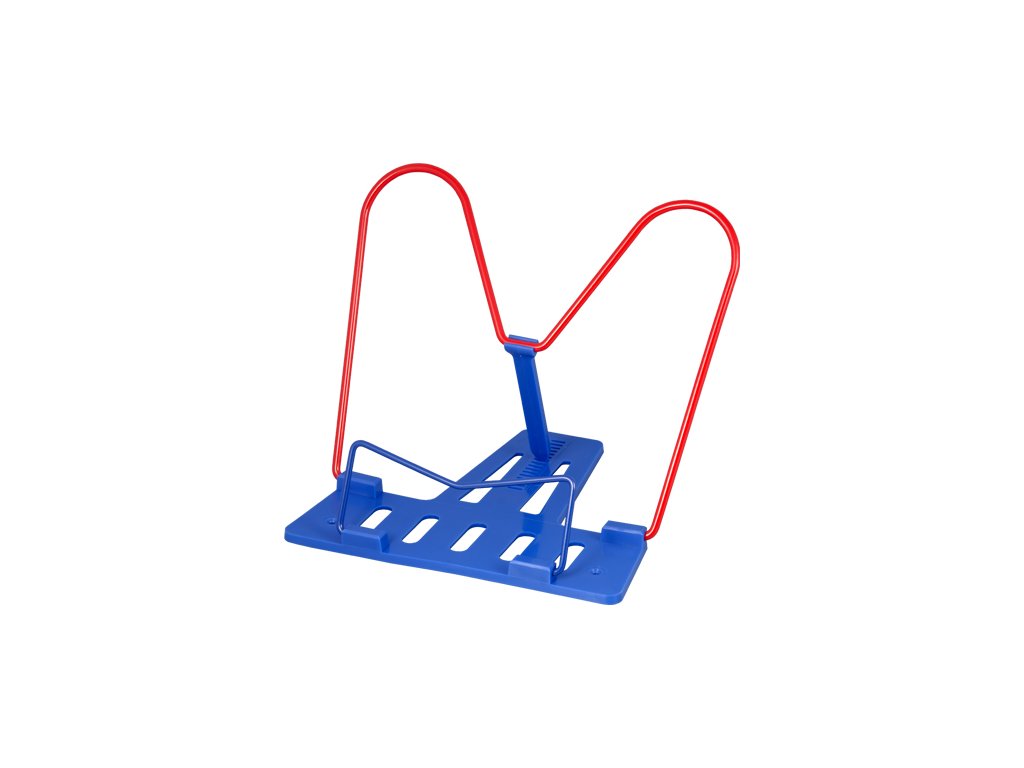 Praktický pomocník v kancelárii, knižnici i doma. Rozkladací stojan na knihu, pozostávajúci z plastovej podstavy a dvoch kovových stojok. Mix farieb - dodávame podľa dostupnosti farieb (modrá, tmavo zelená, žltá, červená, neónovo zelená).Dodatočné parametre