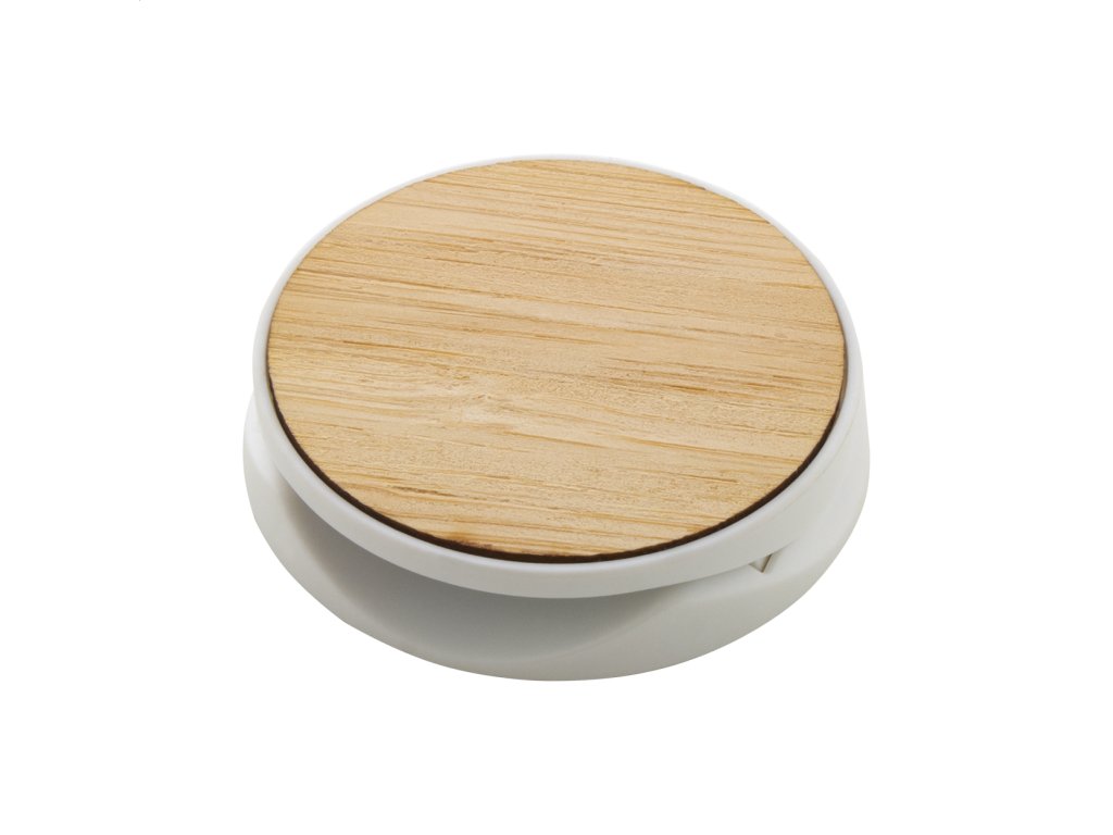 Bambusom pokrytý, okrúhly plastový držiak na mobil so samolepiacou základňou.Dodatočné parametre