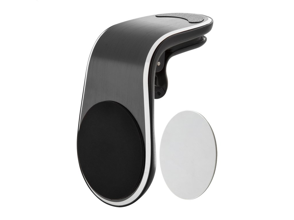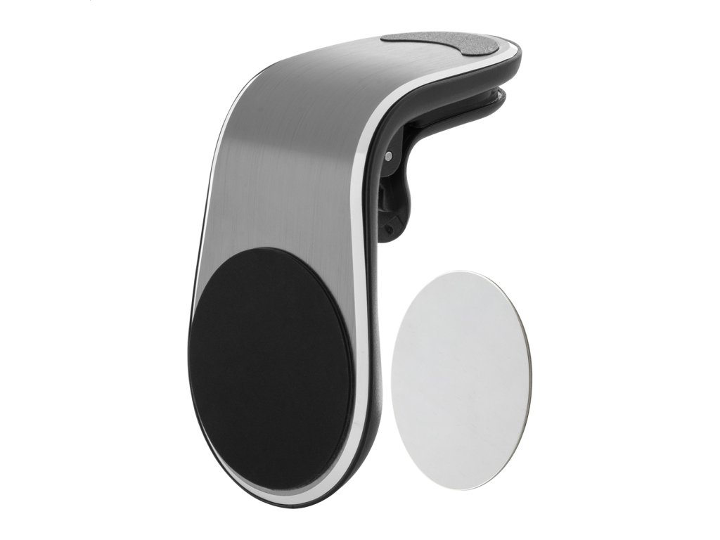 Hliníkový magnetický držiak mobilného telefónu do auta s upevnením do vetracieho otvoru. Vrátane samolepiaceho kovového pliešku na telefón.Dodatočné parametre