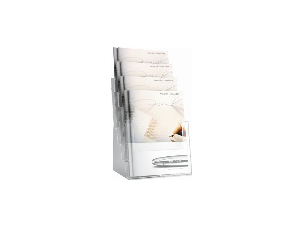 Stojan na prospekty, stolový, A4, 4 priečinky, HELIT