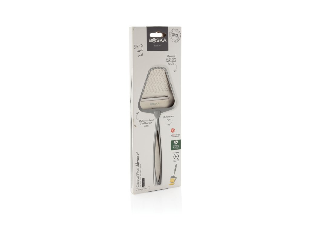 Strúhadlo na syr BOSKA Monaco+ je nerezové strúhadlo vhodné na všetky druhy syrov s unikátnym nepriľnavým diamantovým vzorom. Je možné ho umývať v umývačke a skladovať v chladničke. Získalo ocenenie Red Dot Design Award a má doživotnú zárukuDodatočné parametre