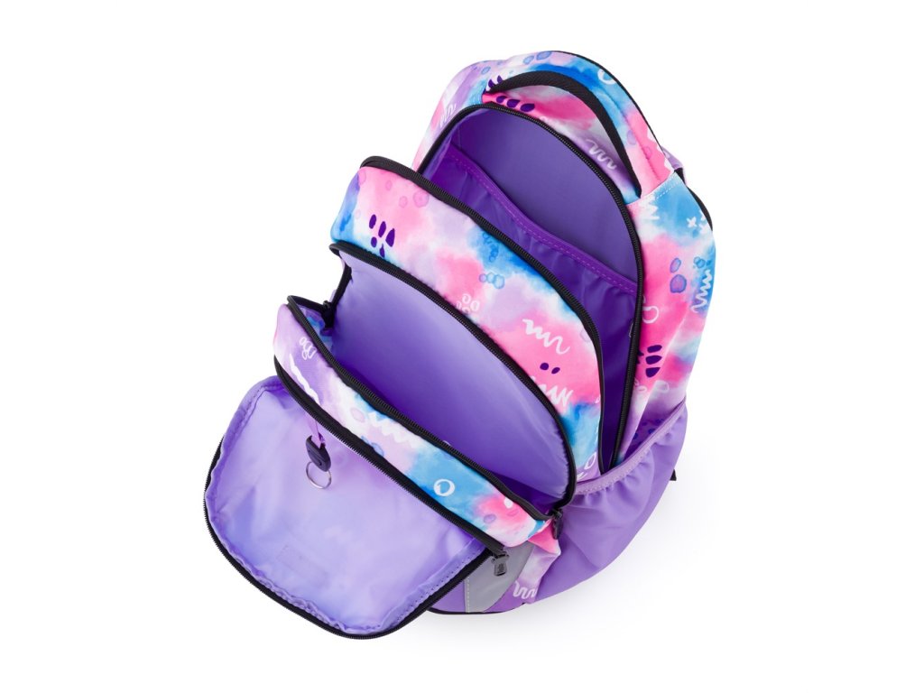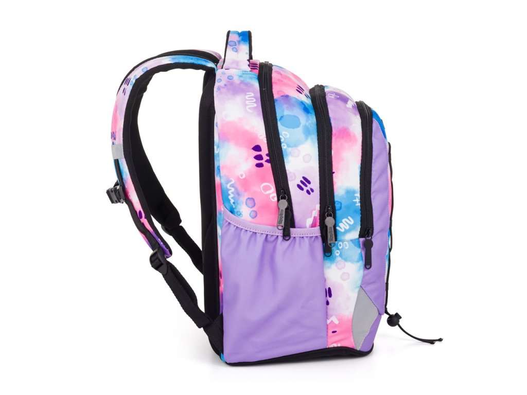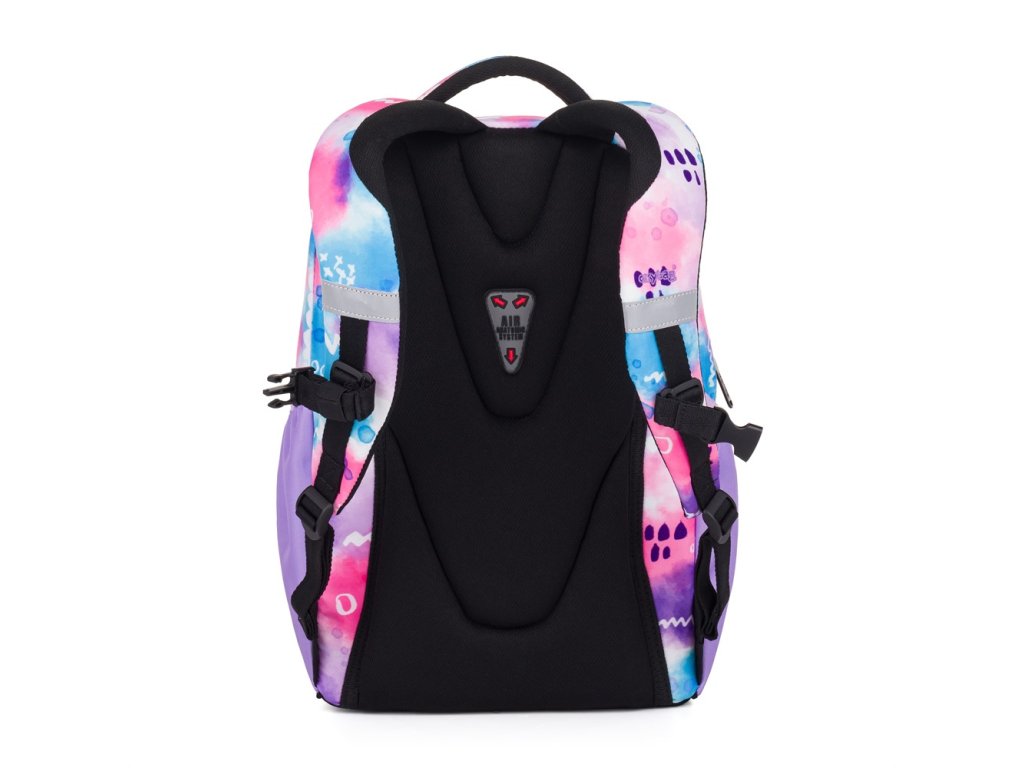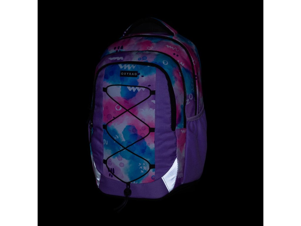 Batoh z radu OXY Touch je ideálnou voľbou pre školákov od 3. triedy, ktorí potrebujú dostatok priestoru na všetko dôležité do školy aj na voľnočasové aktivity. Trojkomorové usporiadanie batohu poskytuje dostatok miesta na učebnice, zošity, desiatu a ďalšie nevyhnutnosti. Hlavná priestranná komora obsahuje priehradku na notebook, zatiaľ čo predné vrecko je vybavené organizérom a karabínou na kľúče. Do bočného vrecka ľahko uložíte fľašu s pitím. Vďaka anatomicky tvarovanému a priedušnému chrbtu spolu s nastaviteľnými ramennými a hrudnými popruhmi sa batoh pohodlne nosí aj pri plnom zaťažení. Spevnené nepremokavé dno spoľahlivo chráni obsah pred vlhkosťou, reflexné prvky zase zaisťujú lepšiu viditeľnosť dieťaťa na ceste. Na prednej strane batohu sa nachádza praktická gumička, pod ktorou je možné upevniť napríklad tenkú mikinu. Dĺžka chrbtového panelu je 43 cm, objem je 25 l, hmotnosť batohu je 900 g a jeho nosnosť je 8 kg.Dodatočné parametre