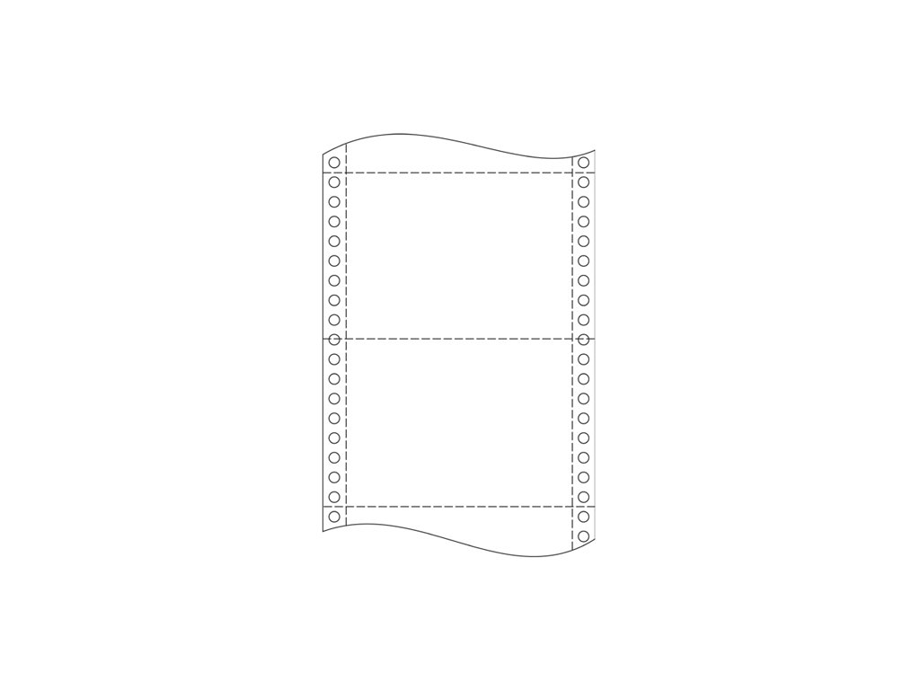 Tabelačný papier šírky 25 cm a dĺžky 12" (304,8 mm) s bočnou perforáciou, rozdelený priečnou perforáciou na dve 6" (152,4 mm) časti. NCR – tabelačný papier viacvrstvový priamoprepisujúci (kópia prijíma text iba na základe tlaku). 750 zložiek / bal.Dodatočné parametre