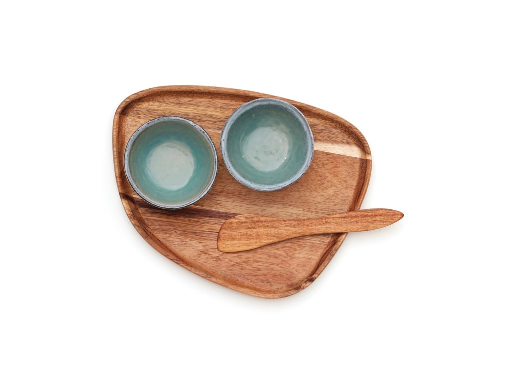 Krásna servírovacia súprava, ktorá obsahuje dve misky a drevený tanier. Skvelé na podávanie malých jedál, ako sú tapas, olivy a menšie občerstvenie. Nomimono čerpá inšpiráciu z prírody a zeme okolo nás a prináša tento rustikálny rad v prírodných zemitých tónoch. Každý predmet je ručne vyrobený a jedinečný. Každá položka je trikrát skontrolovaná, aby sa dosiahla správna povrchová úprava. Vhodné do umývačky riadu a mikrovlnnej rúry.Dodatočné parametre
