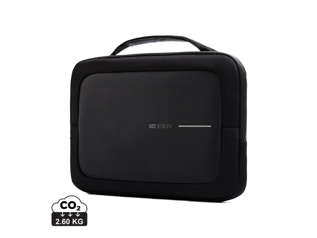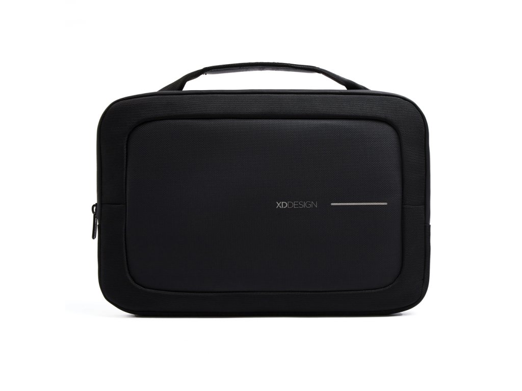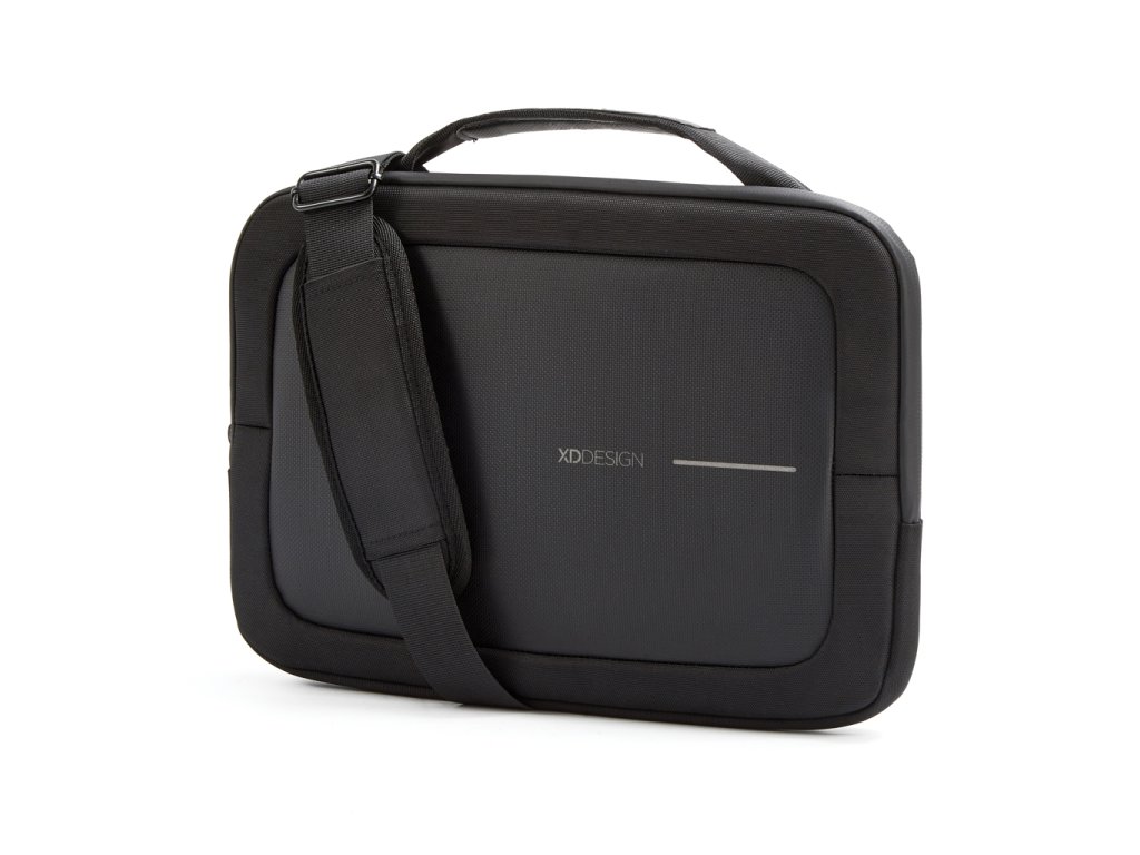 Taška od XD Design v klasickej čiernej farbe ponúka spoľahlivú ochranu pre až 14" notebook. Precízne vyrobená z recyklovaného polyesteru 1200D s repelentnou úpravou, vodeodolným zipsom a šedou podšívkou. Odnímateľný ramenný popruh pre pohodlné nosenie. Vonkajšie menšie vrecko na drobnosti. Vyrobené z recyklovaného polyesteru vrátane skenovateľnej zložky AWARE™ garantujúcej obsah recyklátu. Obsah recyklovanej zložky: 17%.Dodatočné parametre
