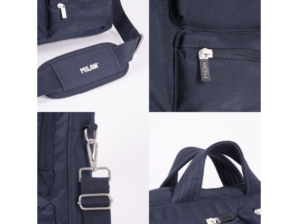 Taška na notebook s priestranným hlavným priestorom polstrovaným zamatovou podšívkou a 3 prednými vreckami.