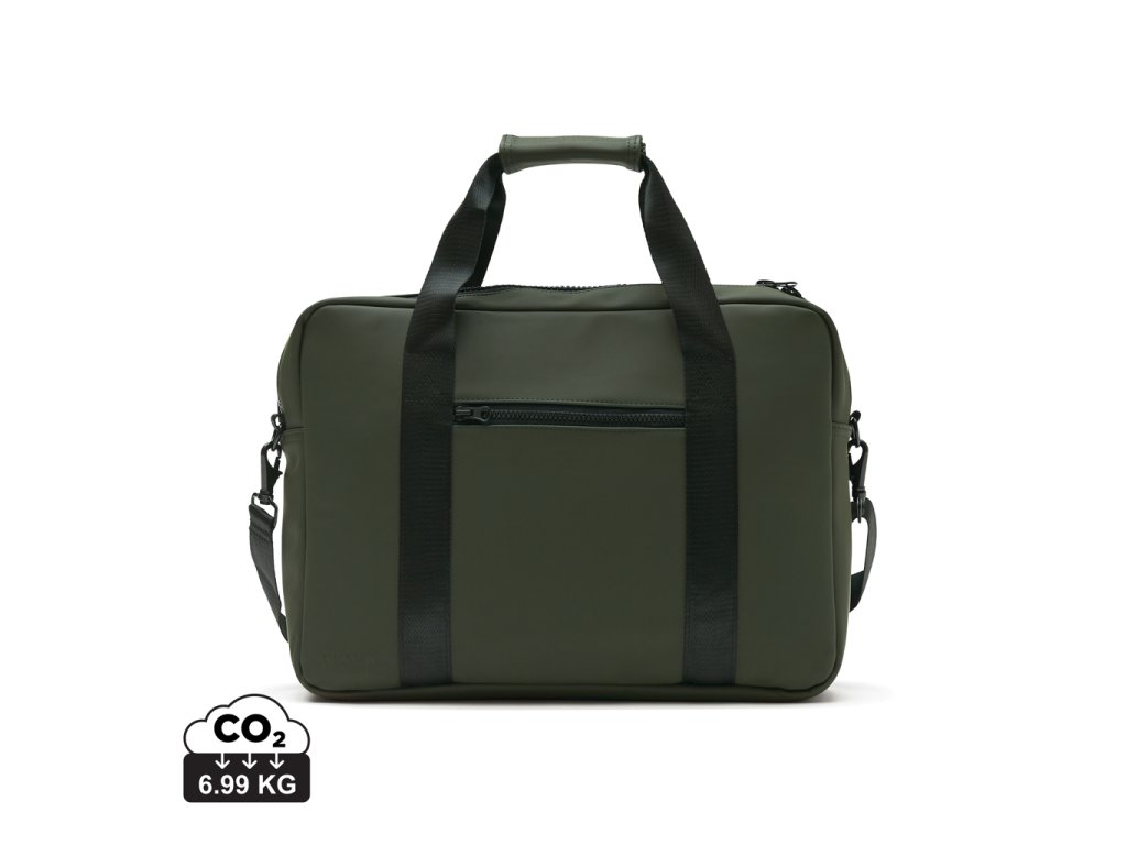 Taška na notebook s moderným a čistým dizajnom. Kombinácia funkčnosti a formy: okrem bežného vrecka na notebook má táto taška aj priestor na perá a ceruzky, dokumenty a ďalšie veci. Taška je vyrobená z vodoodpudivého materiálu, má ramenný popruh a uši na prenášanie. Na zadnej strane je vybavená popruhom na umiestnenie na rukoväť kufra. Vhodné pre až 17" notebooky.Dodatočné parametre