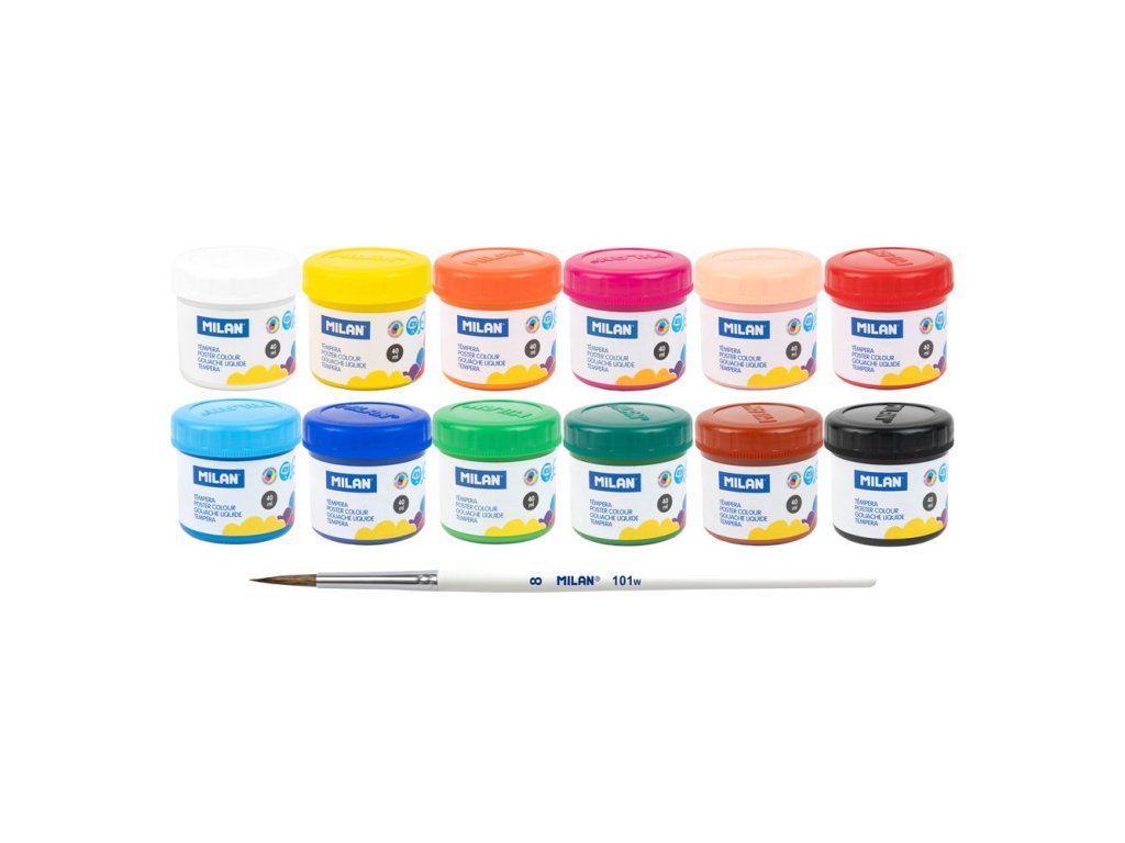 Temperové farby MILAN 40 ml (12 farieb) + štetec