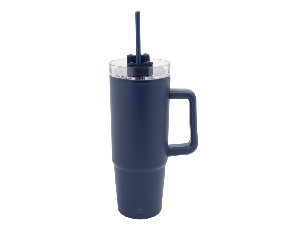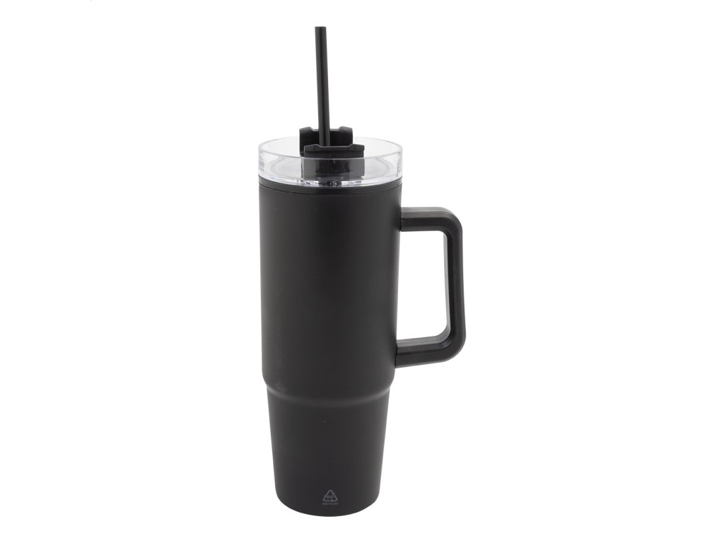 Dvojstenný termo hrnček z recyklovaného PP plastu s plastovým viečkom na pitie a slamkou. 900 ml.Dodatočné parametre