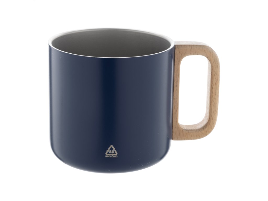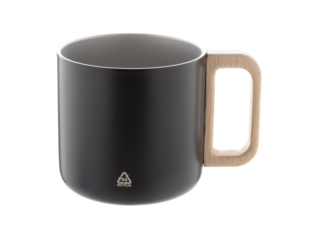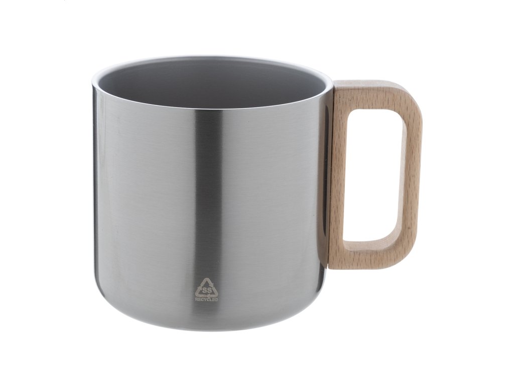Dvojstenný termo hrnček z recyklovanej nerezovej ocele s dreveným uchom. 350 ml.Dodatočné parametre