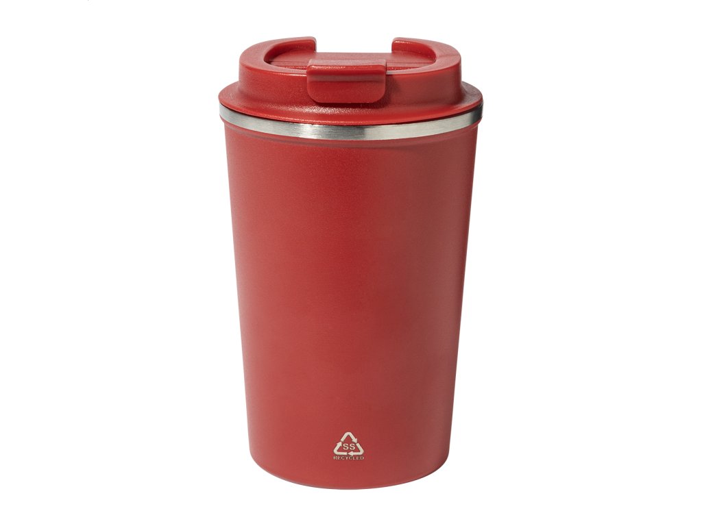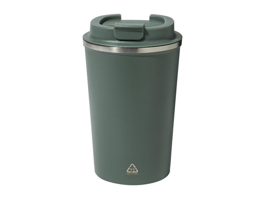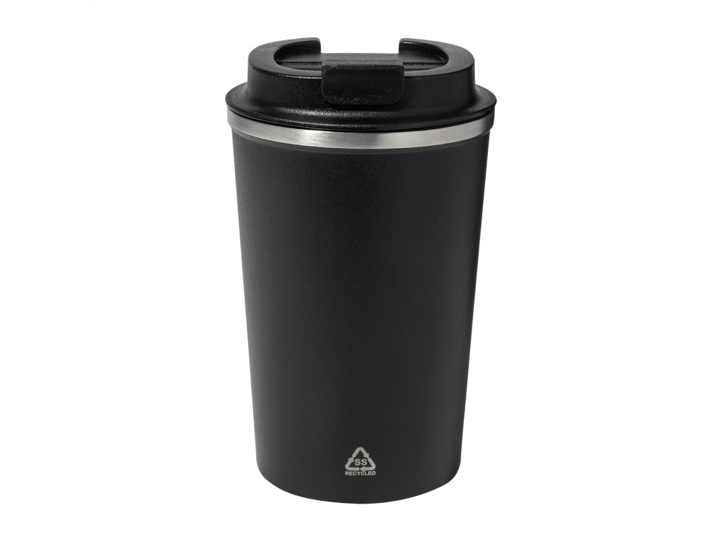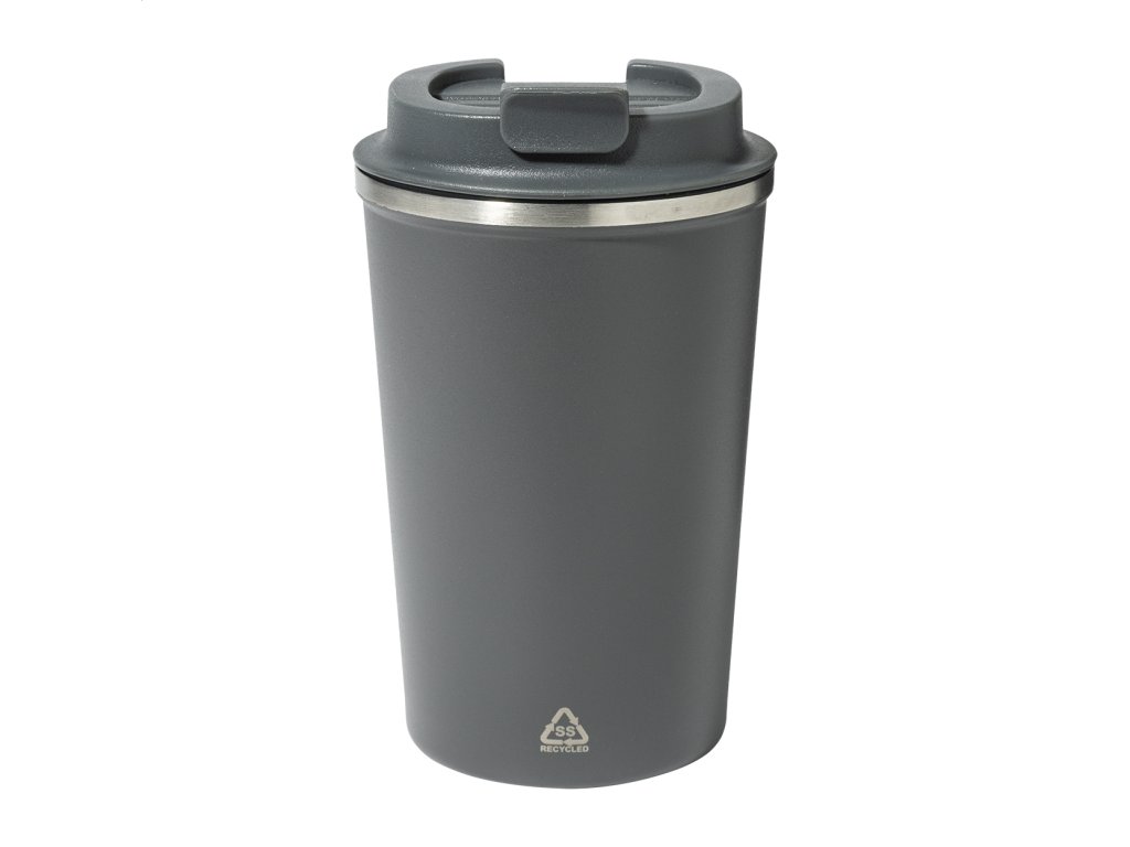 Dvojstenný termo hrnček z recyklovanej nerezovej ocele s viečkom na pitie z PP. 350 ml.Dodatočné parametre