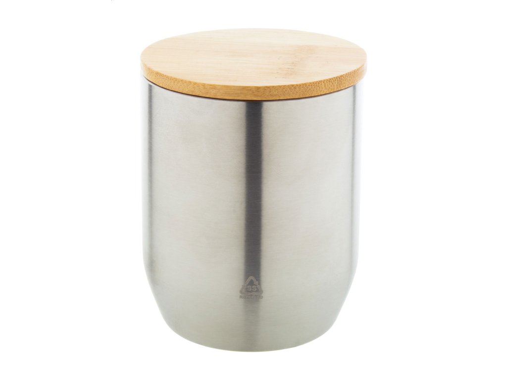 Dvojstenný termo hrnček z recyklovanej nerezovej ocele s bambusovým viečkom, 300 ml.Dodatočné parametre