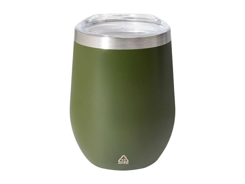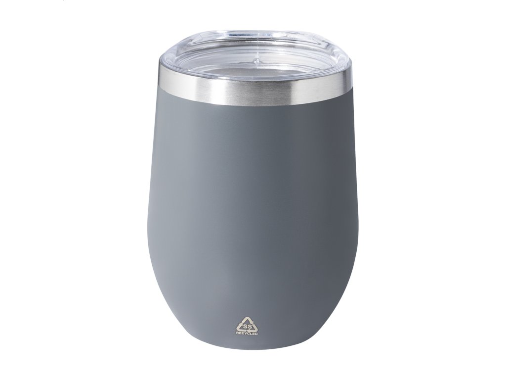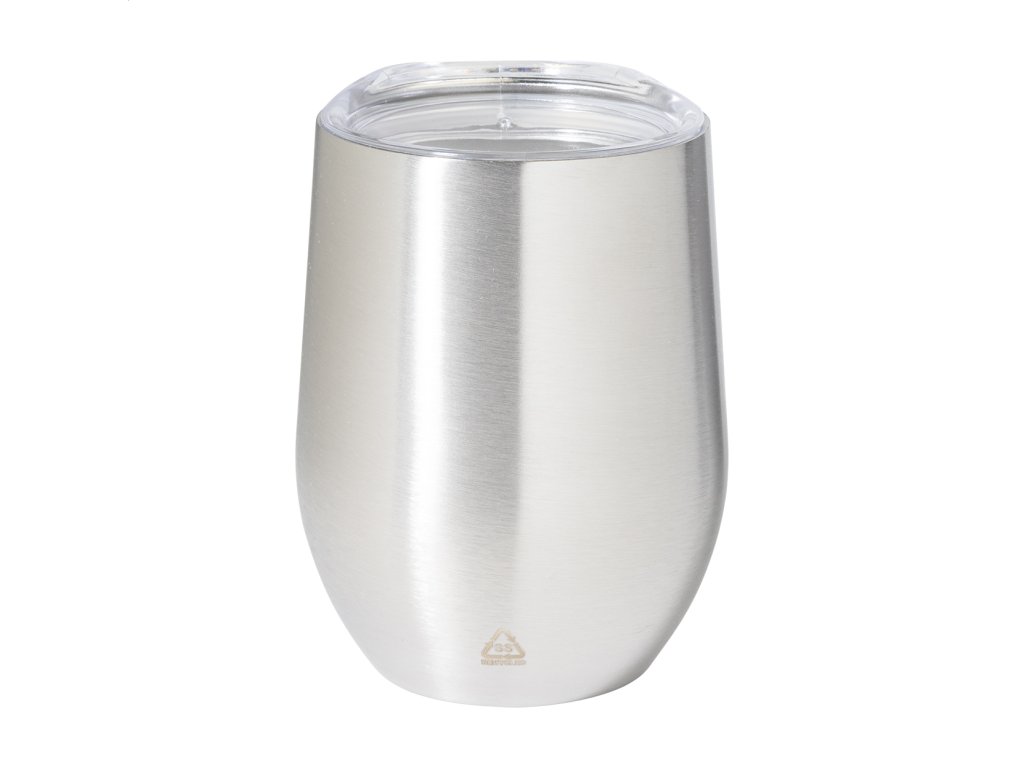 Dvojstenný termo hrnček z recyklovanej nerezovej ocele s plastovým viečkom na pitie. 350 ml.Dodatočné parametre