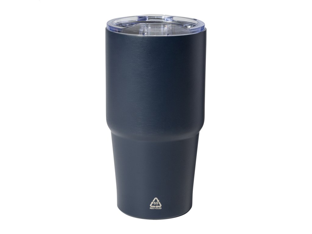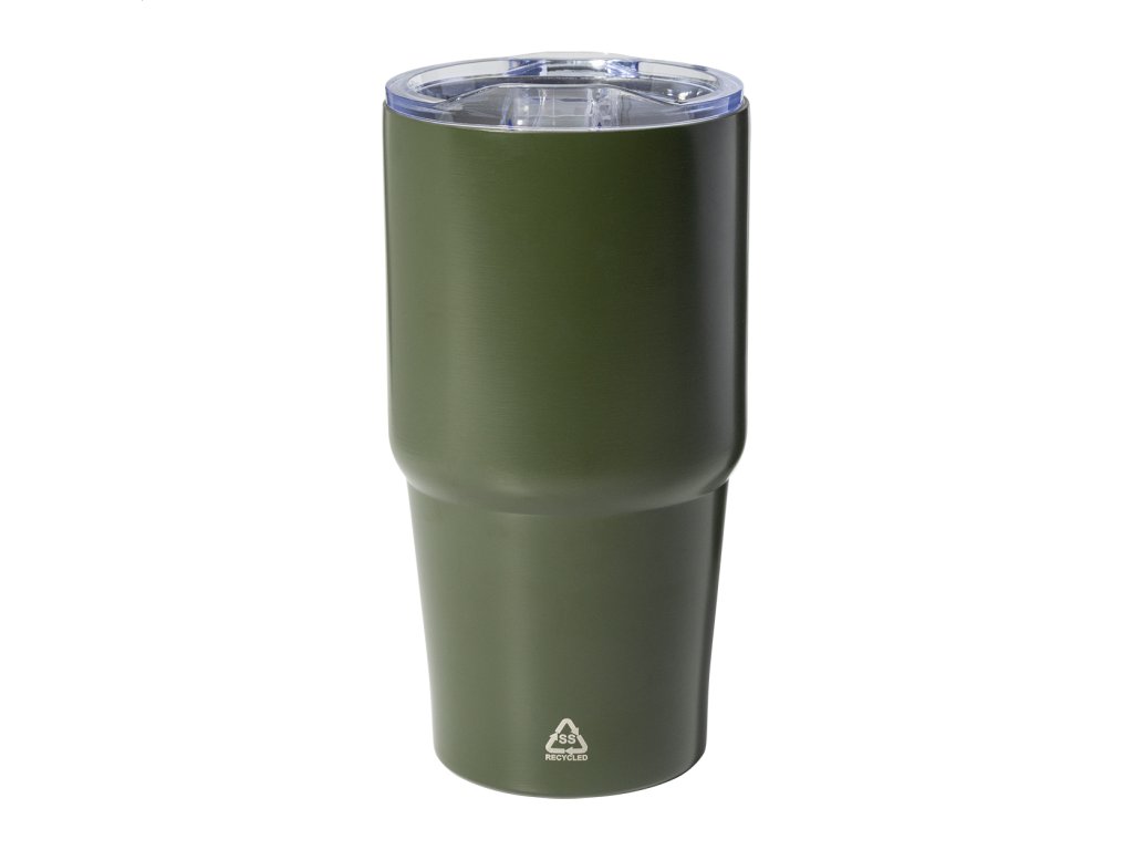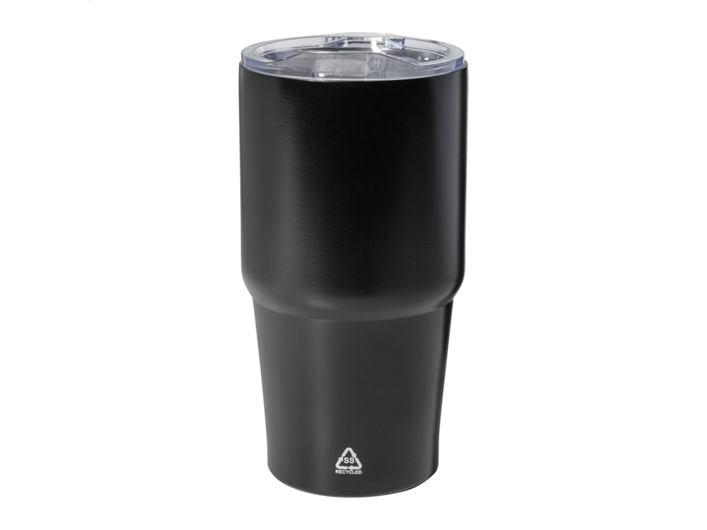 Dvojstenný vákuovo izolovaný termohrnček z recyklovanej nerezovej ocele s viečkom z polystyrénového plastu. 600 ml.Dodatočné parametre