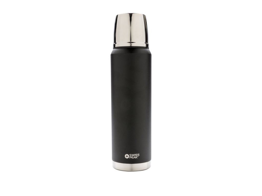 Rad Swiss Peak Elite vyčnieva použitím dvojstennej vákuovo medené izolácie a nehrdzavejúcej ocele 18/8. Kvalitný matný čierny nástrek zaručene vydrží bez vyblednutia či popraskania. Vnútorná stena je osadená medenou izoláciou, vďaka ktorej vaše nápoje ostanú horúce po dobu až 8 hodín a studené až po 24 hodín. Len pre ručné umývanie, nepriepustná. Objem 1 000 ml.Dodatočné parametre