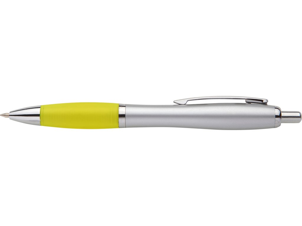 Plastové guľôčkové pero TERNO striebornej farby. Farebný gumový úchop, strieborné doplnky. Modrá náplň veľkoobjemová. Drobné kazy na striebornej časti. Kolekcia EVERGREEN.Dodatočné parametre