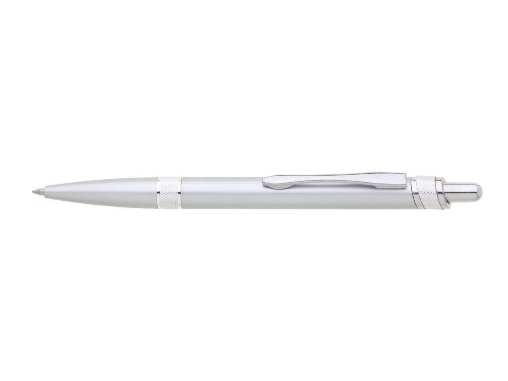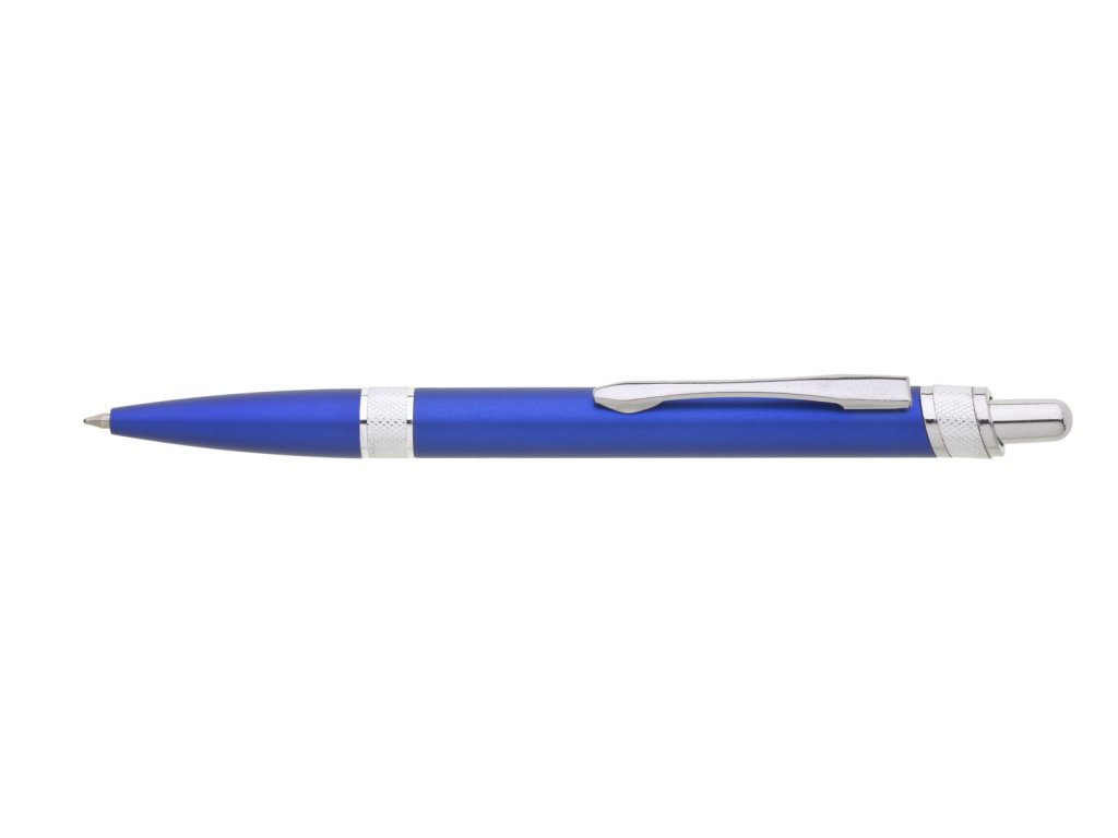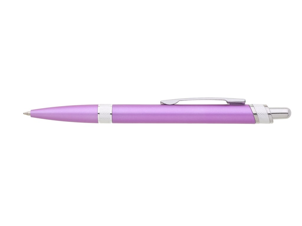 Plastové pero s metalickým růžovým povrchom a chrómovými ozdobnými detailmi. Veľkoobjemová, modro píšuca náplň.Dodatočné parametre