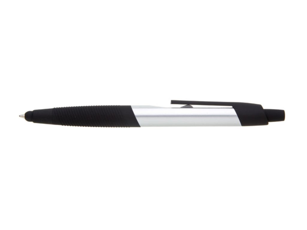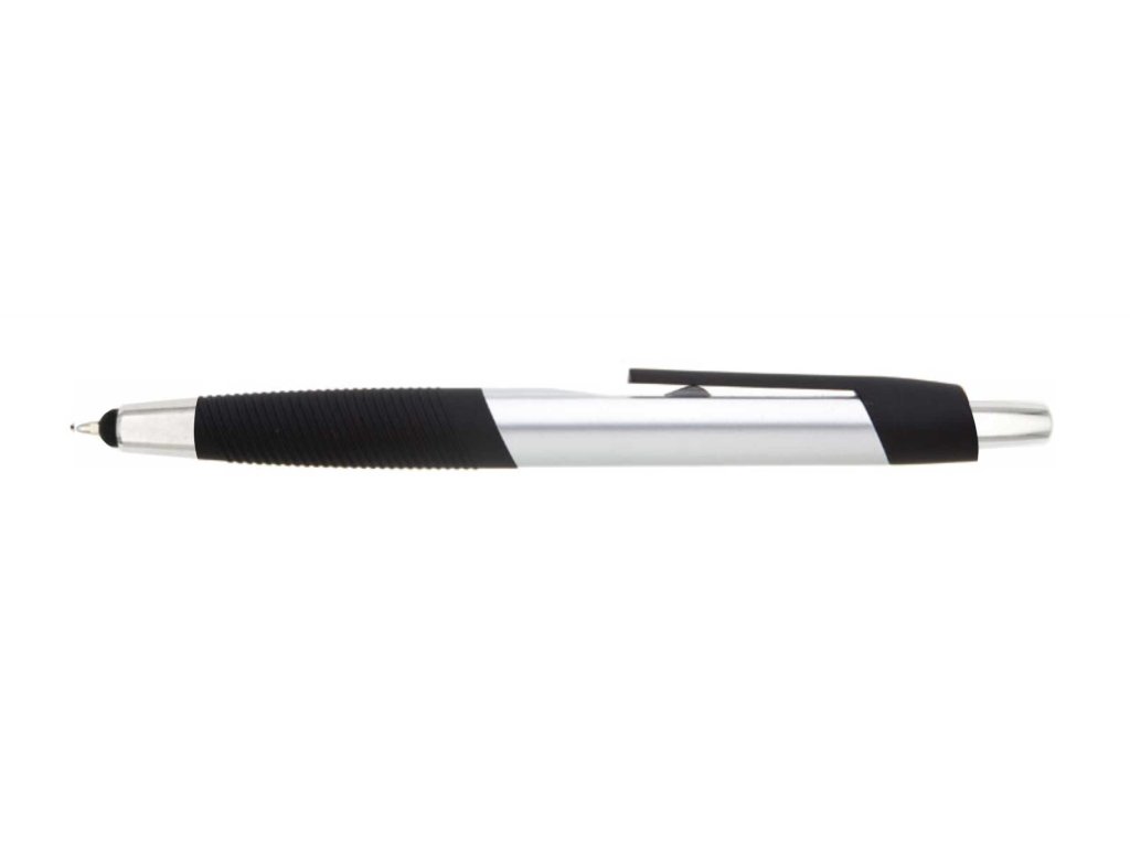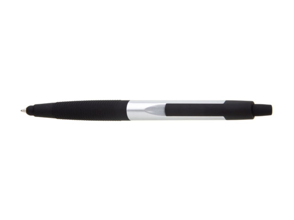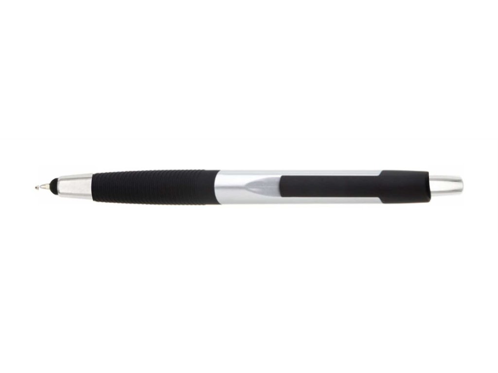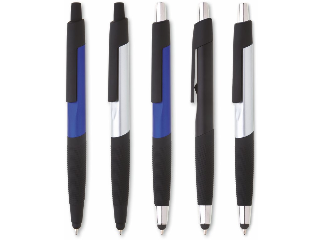 Plastové guľôčkové pero TOCCA s čiernym vrúbkovaným úchopom a klipom. Modrá náplň X-20.Dodatočné parametre