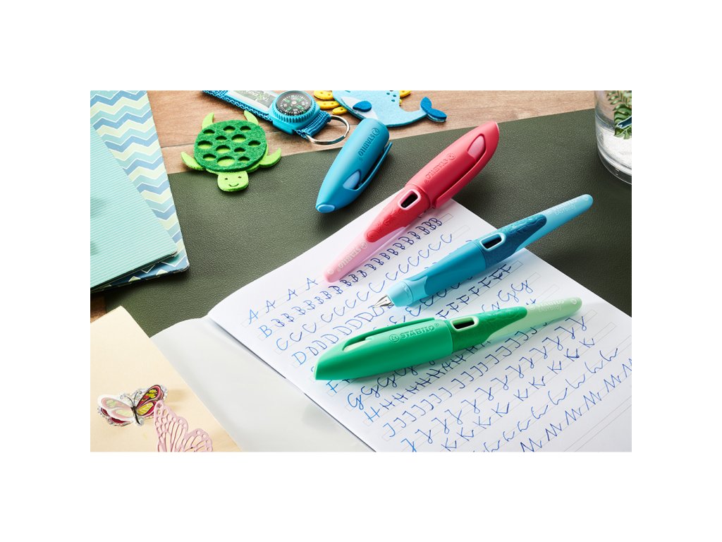 Úchopový diel STABILO EASYbirdy v edícii Pastel pre ergonomické plniace pero s protišmykovou úchopovou zónou je dostupné v 2 verziách - pre ľavákov a pravákov.