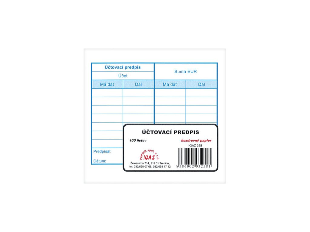 Účtovací predpis 10,5 x 10 cm 258Dodatočné parametre