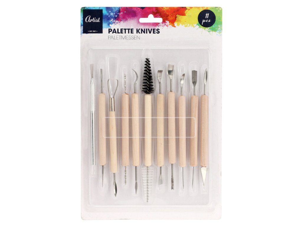 Umelecká sada obsahuje 11 kusov modelovacích nástrojov v priehľadnom obale, pre jemné tvarovanie modelovacej hmoty, sadry alebo hliny. S kvalitnou drevenou rúčkou. O rozmere v rozmedzí 13-19 cm.Dodatočné parametre