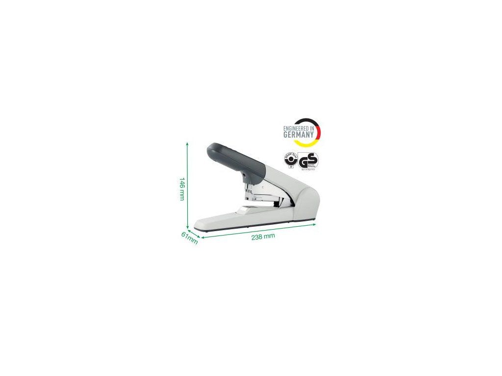 Ľahký model veľkokapacitnej zošívačky pre každodenné použitie v kancelárii. Jediným typom spiniek zošijete 2 až 60 listov papierov. Moderný design, elegantná kombinácia farieb. Zošívačka je vyrobená z plastu, mechanické diely sú kovové.Dodatočné parametre