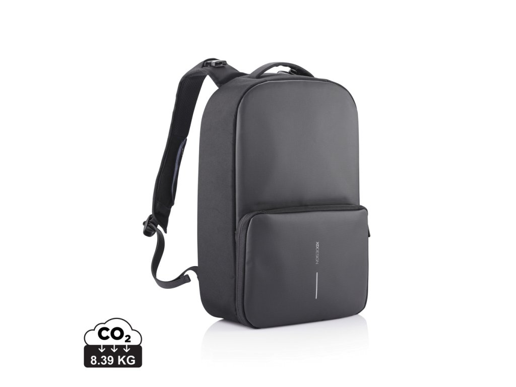 Flexibilný a neuveriteľne praktický, či už cestujete do práce, do školy alebo na šport. Viacúčelový batoh XD Design Flex je prvý business batoh so športovou taškou v jednom. Rýchla premena medzi variantmi jednoducho pomocou rozovretia prednej priehradky, vďaka čomu vytvoríte dodatočný oddelený priestor zvyšujúci celkový objem z 16 na 24 litrov. Nedobytné vlastnosti: skrytý zadný zips hlavnej časti zabraňujúci predný prístup k uloženým cennostiam, skryté vrecká, vrecko s RFID ochranou na zadnej časti batohu pre uloženie peňaženky alebo napríklad cestovného pasu. Na ramennom popruhu je rýchly USB nabíjací port a držiak slnečných okuliarov. Vyrobené z recyklovaného polyesteru vrátane skenovateľnej zložky AWARE™ garantujúcej obsah recyklátu. Obsah recyklovanej zložky: 42%. Registrovaný dizajn®Dodatočné parametre