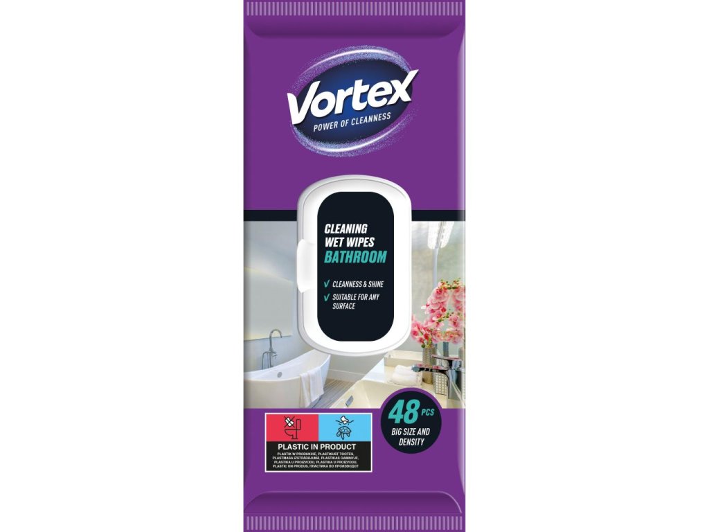 Vlhčené utierky VORTEX do kúpeľne, 48 ks