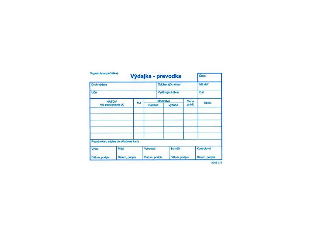 Výdajka - prevodka A6 (173)
