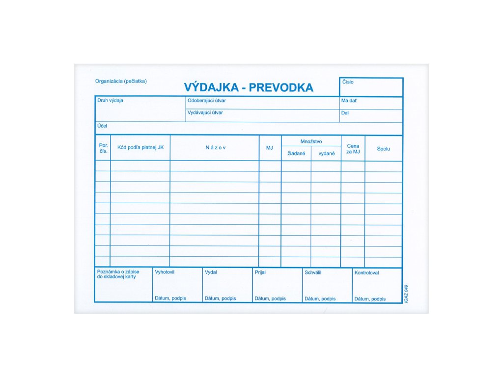 Výdajka - prevodka bez DPH A5, 100 l. (49)