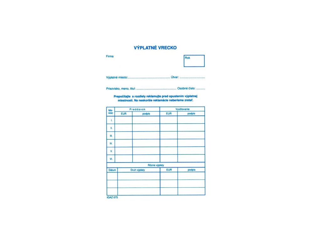 Výplatné vrecko, C6