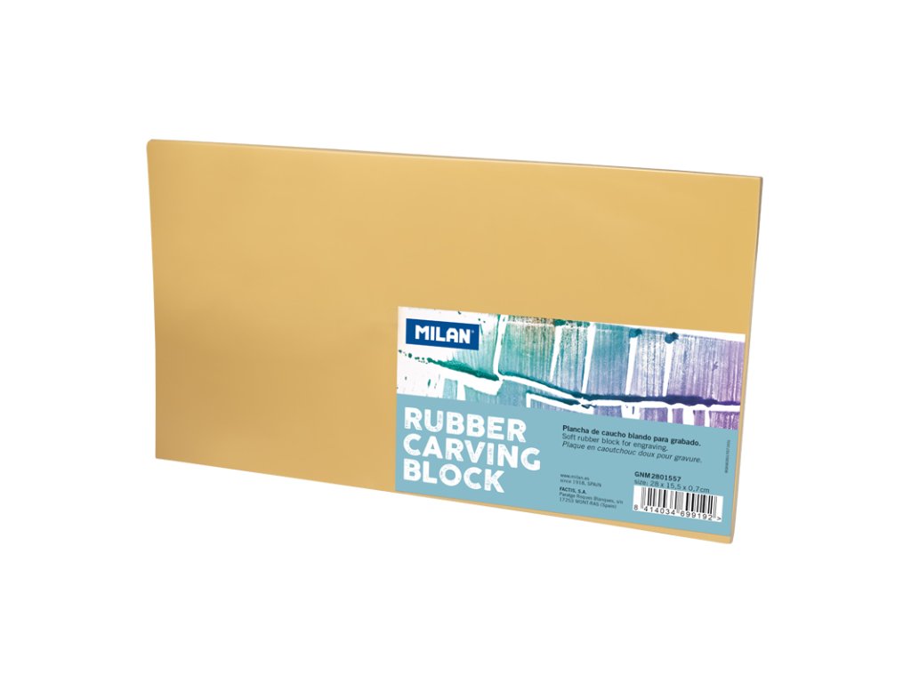 Vyrezávacia doska Large z gumového rezbárskeho bloku v béžovej farbe je vyrobená z mäkkej gumy a je určená na vyrezávacie techniky. Blok sa po použití ľahko umyje a môže sa znovu použiť. Môže sa tiež použiť s atramentmi rozpustnými vo vode, farbami tkanín a sieťotlačou, ako aj s atramentovými vankúšikmi. Výtlačky sa vyrazia priamo pôsobením tlaku rukami alebo valčekom.Dodatočné parametre