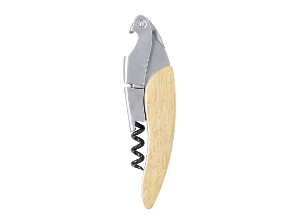 Otvárač a vývrtka z nerezovej ocele s drevenou rukoväťou.Dodatočné parametre
