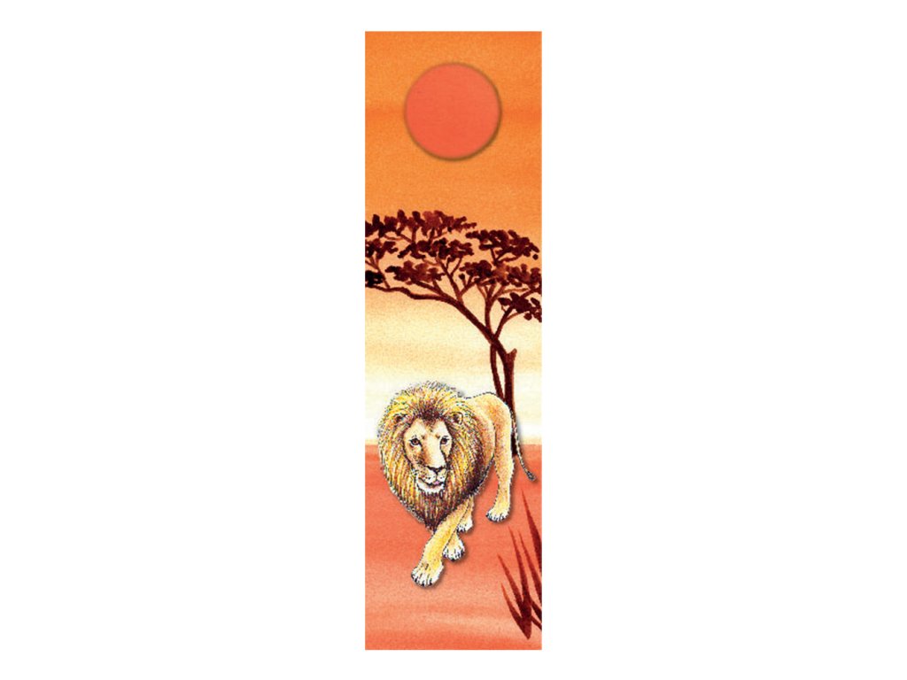 - záložka z tuhého materiálu (kartónu), obojstranne potlačená- horná postavička /objekt na lícovej strane vyseknutá a dolepená, takže zo záložky vystupuje - 3D efekt