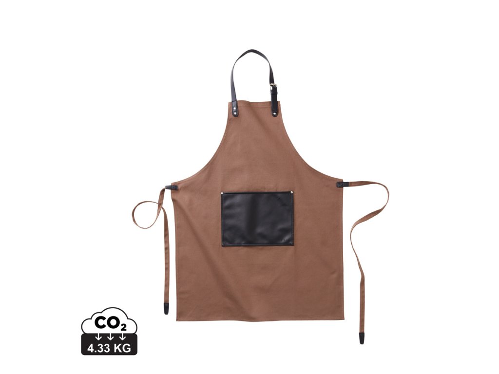 Štýlová klasická zástera z hrubého bavlneného plátna s jemnými detailmi z PU kože. Nastaviteľné zapínanie na pracku v hornej časti a veľké vrecko vpredu. Zástera s dlhou životnosťou, ktorá čím dlhšie ju nosíte, tým je krajšia.Dodatočné parametre