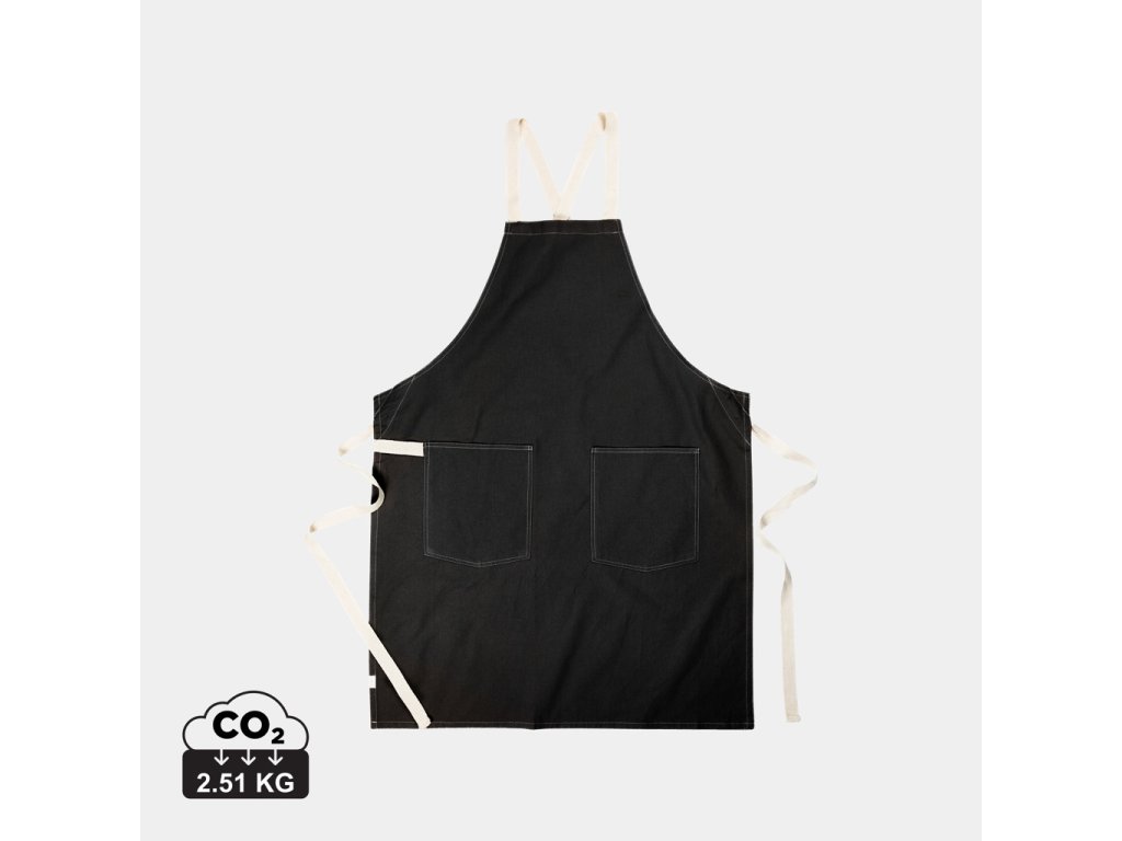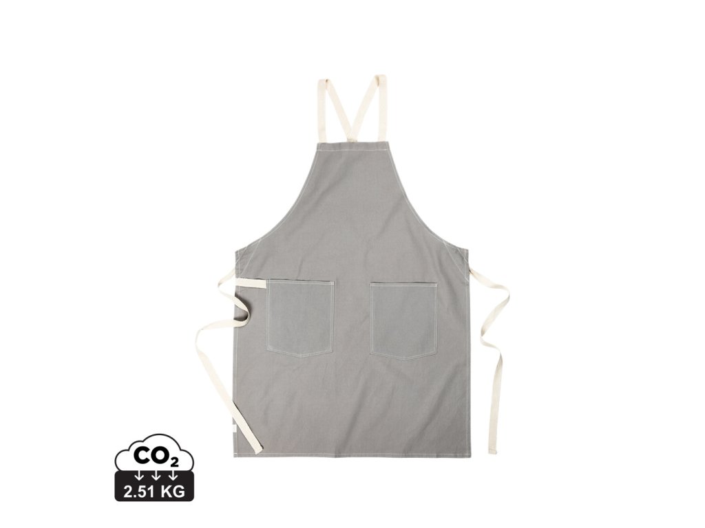 Zástera vyrobená zo 70 % certifikovanej recyklovanej bavlny od dodávateľov bavlneného odpadu. Vlákna, ktoré sa zvyčajne považujú za nepoužiteľné, dosiahli vďaka správnemu výrobnému procesu požadované vlastnosti. Táto zástera je mimoriadne široká, aby poskytovala maximálnu ochranu. Má dve veľké predné vrecká a pútko na zavesenie riadu alebo utierky.Dodatočné parametre