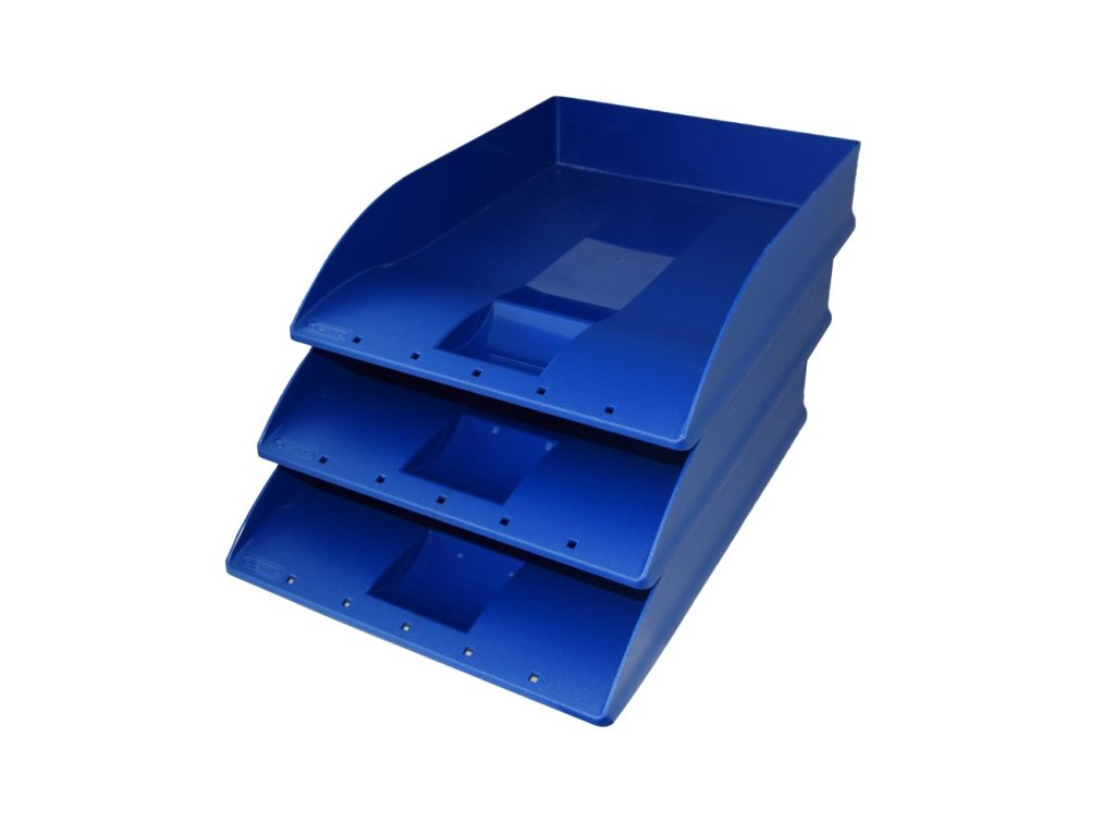 Stohovateľný plastový odkladač dokumentov formátu A4.