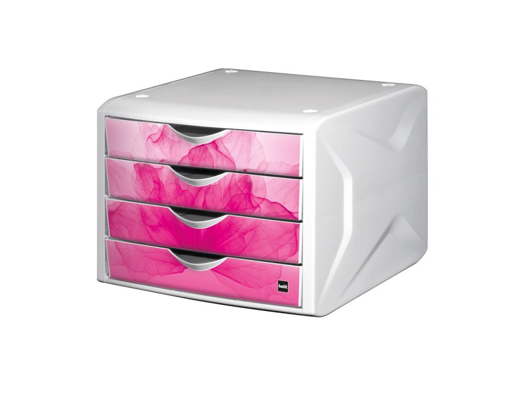 Stohovateľný box z odolného polypropylénu so štyrmi zatvorenými zásuvkami a dekoráciou na prednej strane zásuviek. Svieži dizajn. Rozmery (š × v × h) 262 × 212 × 330 mm.Dodatočné parametre