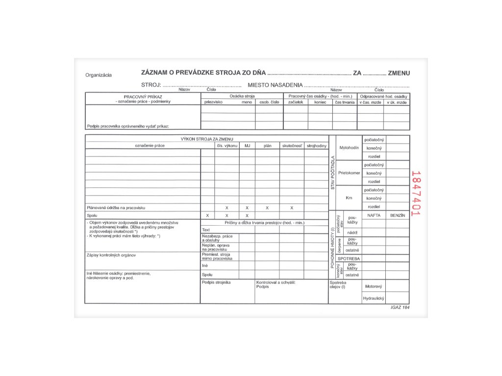 Záznam o prevádzke stroja A5, 100 listov (184)